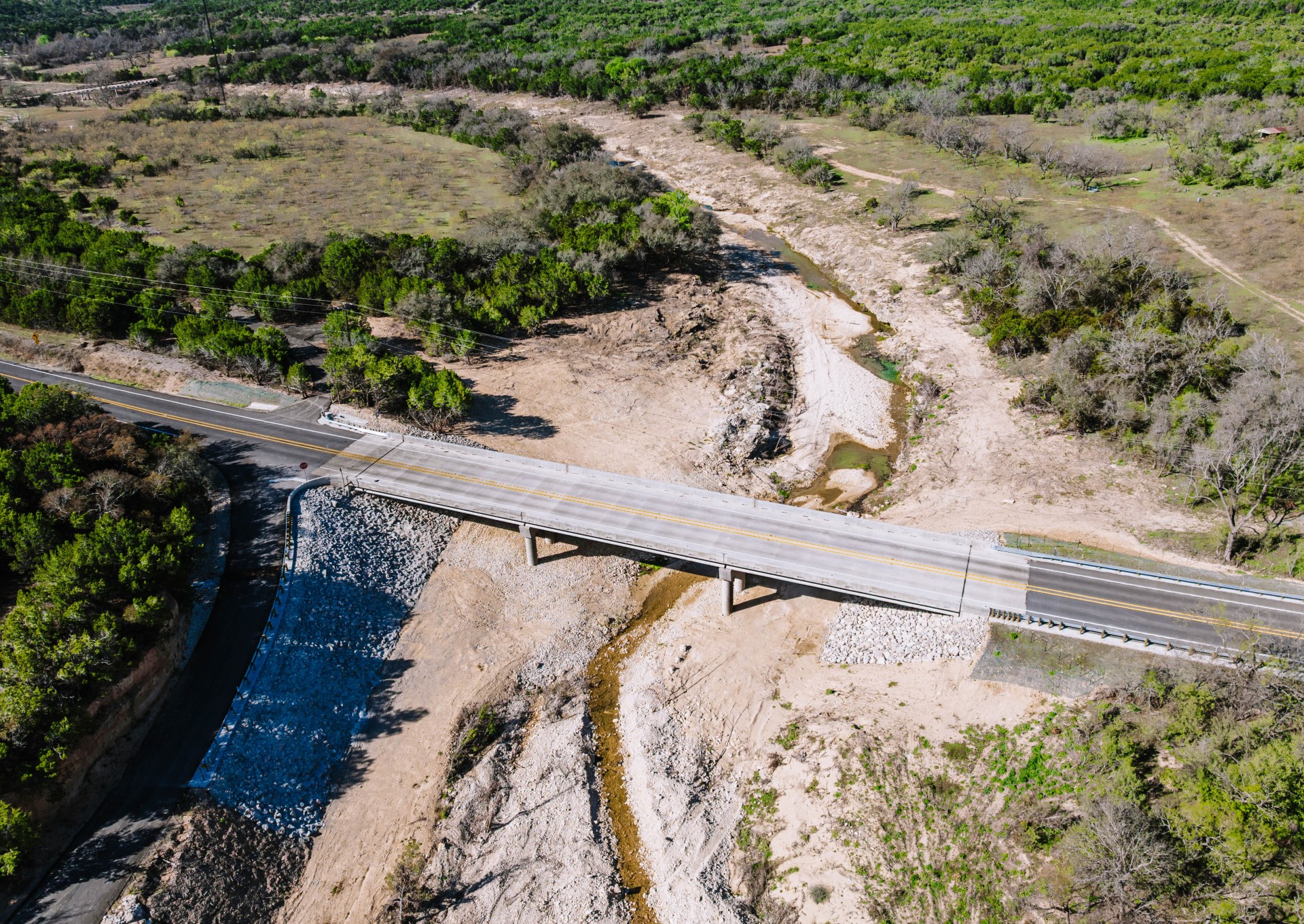 In July 2025, catastrophic flash flooding destroyed the Cow Creek Bridge, cutting off a critical commuter route in Burnet County, Texas.